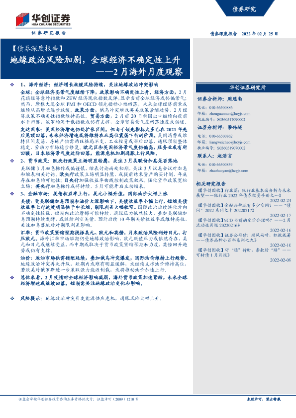 【华创证券】【20220225】2月海外月度观察:地缘政治风险加剧,全球经济不确定性上升-21页