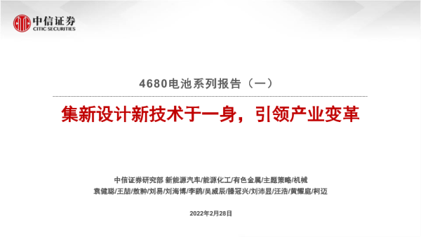 【中信证券】【20220228】4680电池行业系列报告(一):集新设计新技术于一身,引领产业变革-34页