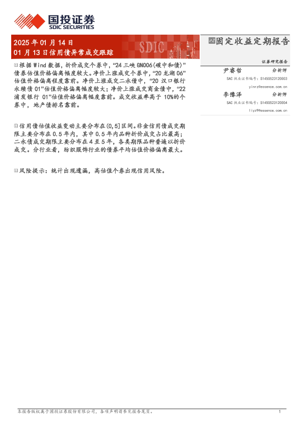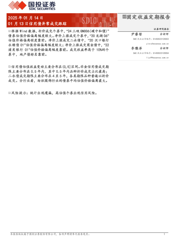 【国投证券】【20250114】01月13日信用债异常成交跟踪-10页