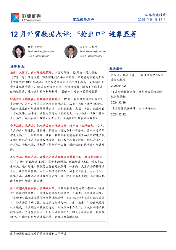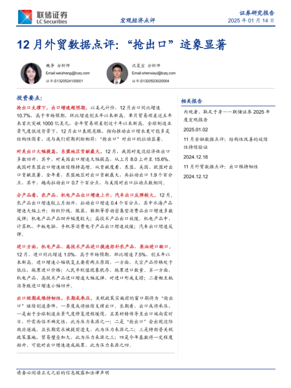【联储证券】【20250114】12月外贸数据点评:“抢出口”迹象显著-10页