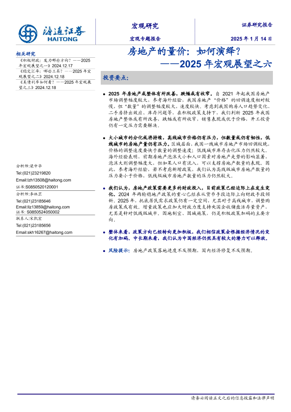 【海通证券】【20250114】2025年宏观展望之六:房地产的量价,如何演绎?-15页