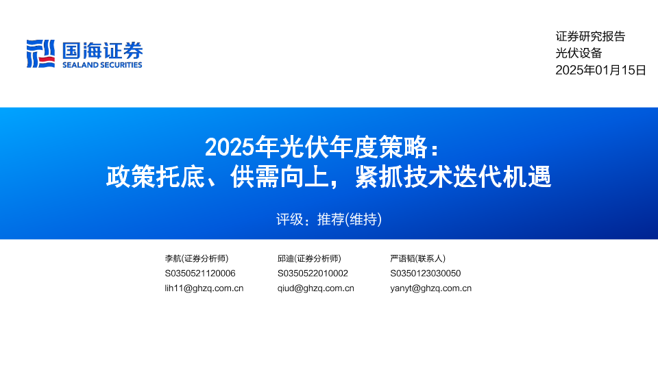 【国海证券】【20250115】2025年光伏行业年度策略:政策托底、供需向上,紧抓技术迭代机遇-45页
