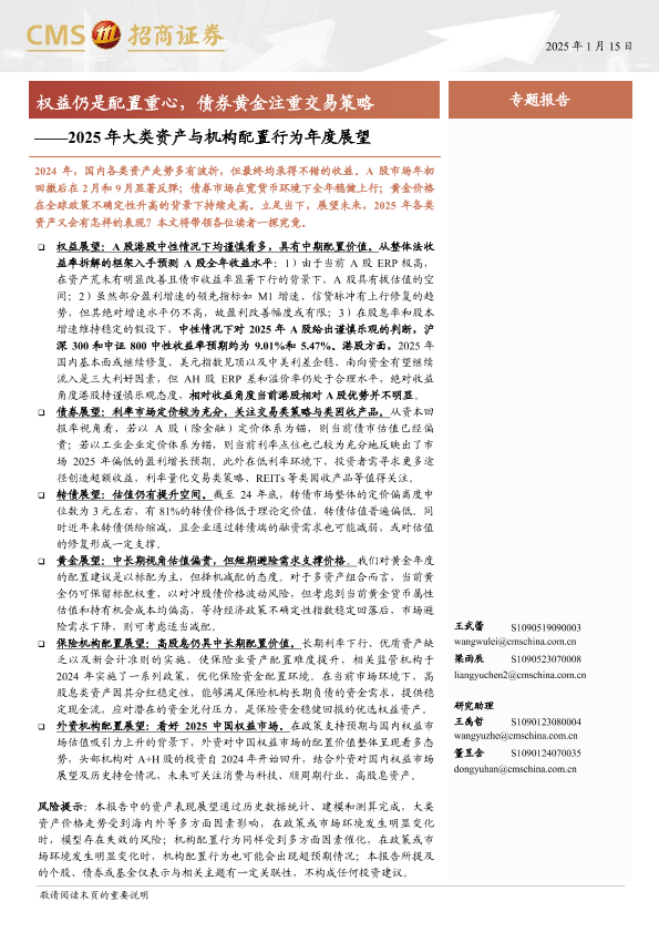 【海通证券】【20250115】2025年大类资产与机构配置行为年度展望:权益仍是配置重心,债券黄金注重交易策略-28页