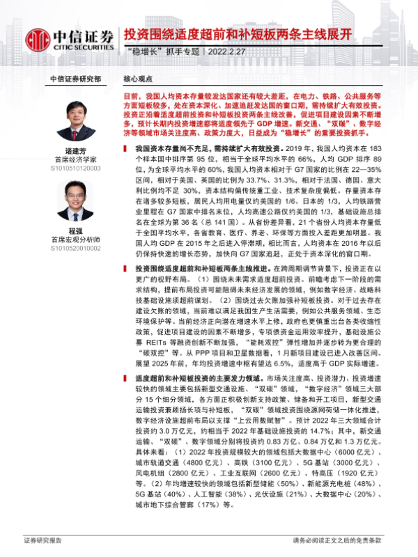 【中信证券】【20220227】“稳增长”抓手专题:投资围绕适度超前和补短板两条主线展开-17页
