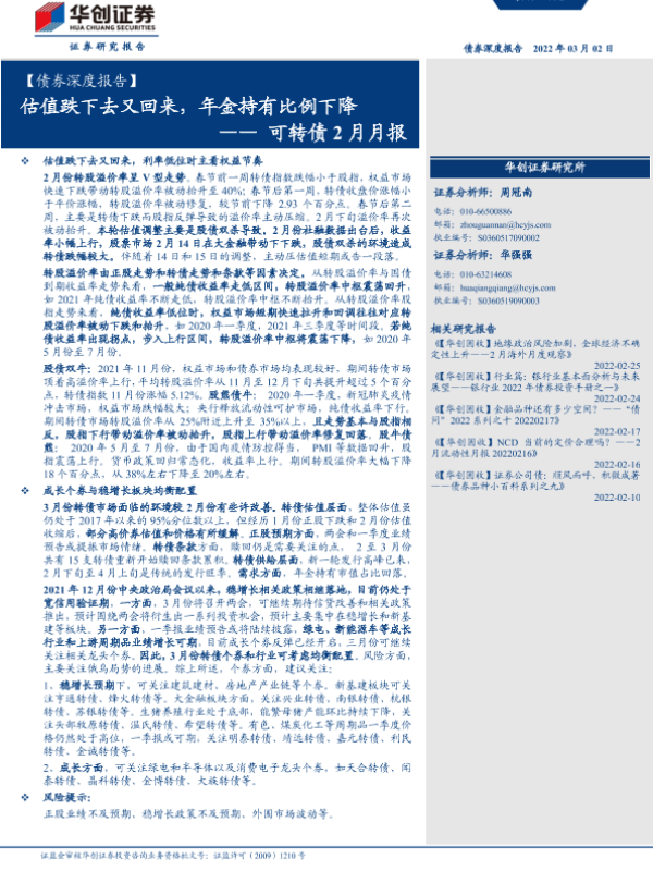 【华创证券】【20220302】【债券深度报告】可转债2月月报:估值跌下去又回来,年金持有比例下降-20页