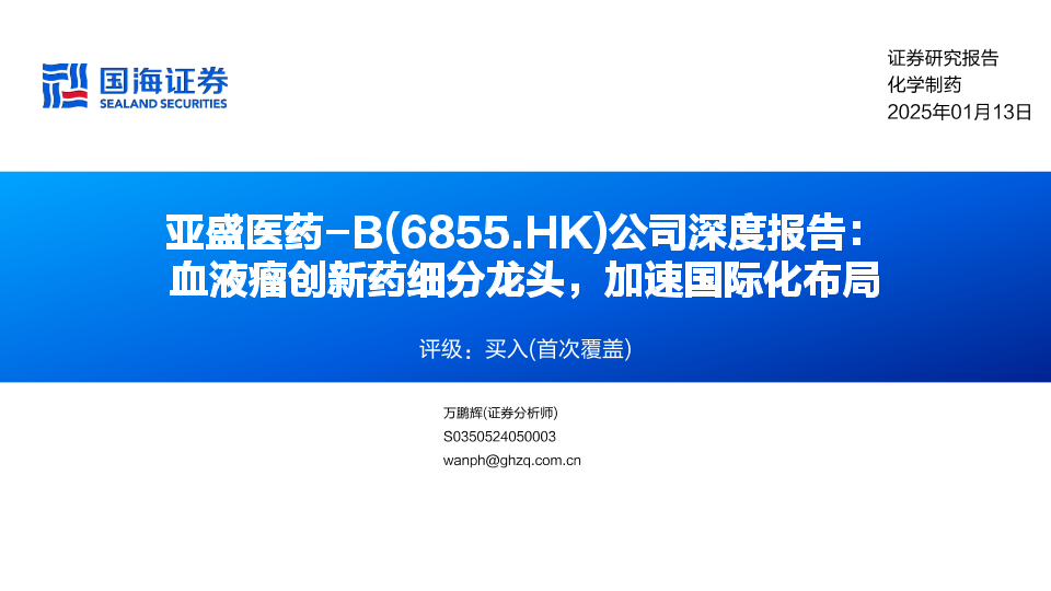 【国海证券】【20250113】亚盛医药-B(6855.HK)公司深度报告:血液瘤创新药细分龙头,加速国际化布局-57页