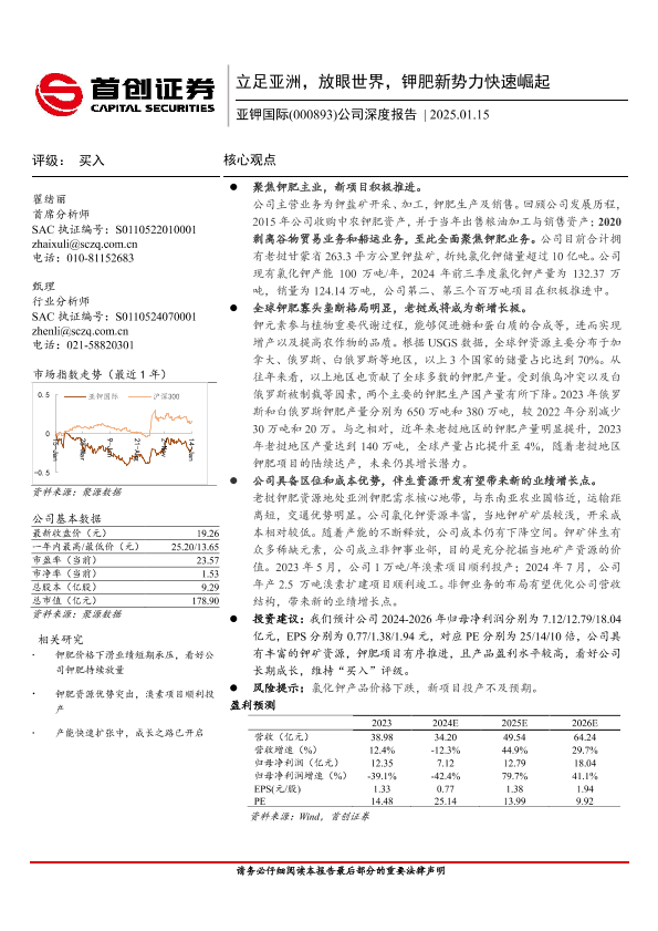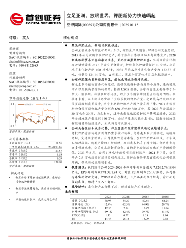 【首创证券】【20250115】亚钾国际(000893)公司深度报告:立足亚洲,放眼世界,钾肥新势力快速崛起-23页