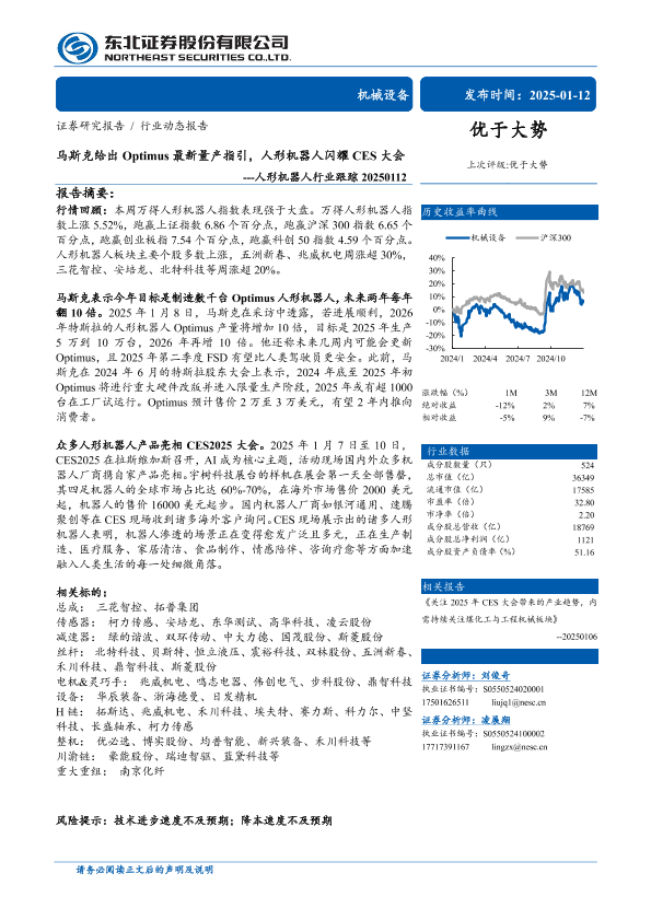 【东北证券】【20250112】马斯克给出Optimus最新量产指引,人形机器人闪耀CES大会---人形机器人行业跟踪-12页