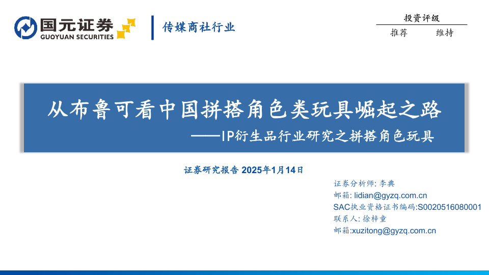 【国元证券】【20250114】传媒商社行业IP衍生品行业研究之拼搭角色玩具:从布鲁可看中国拼搭角色类玩具崛起之路-21页
