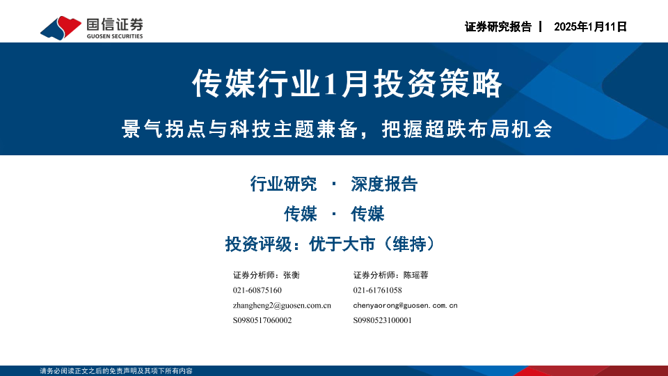 【国信证券】【20250111】传媒行业1月投资策略:景气拐点与科技主题兼备,把握超跌布局机会-41页