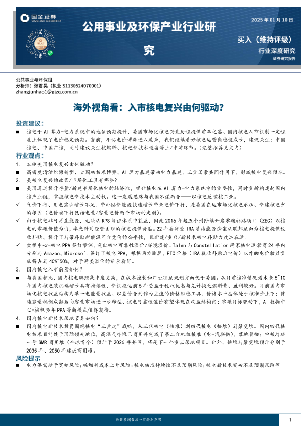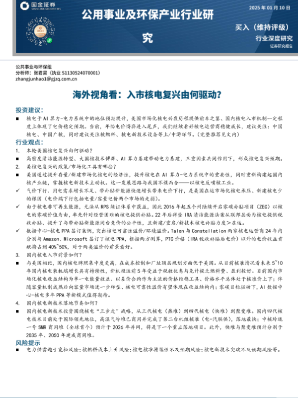 【国金证券】【20250110】公用事业及环保产业行业海外视角看:入市核电复兴由何驱动?-38页