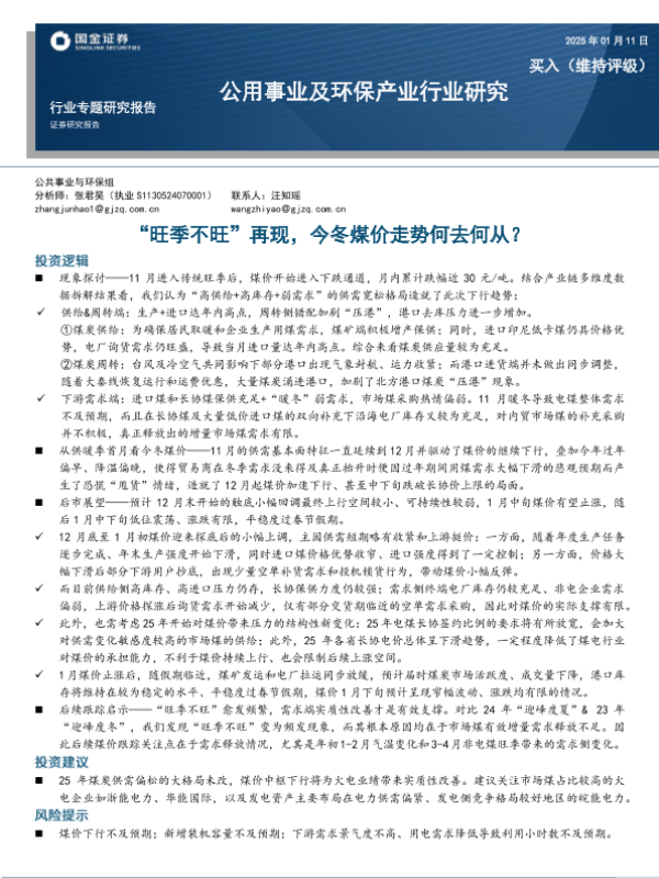 【国金证券】【20250111】公用事业及环保产业行业研究:“旺季不旺”再现,今冬煤价走势何去何从?-25页