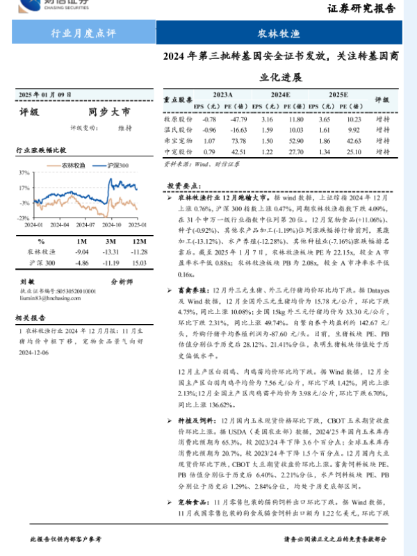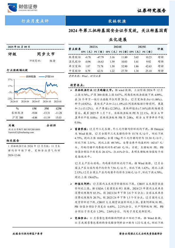 【财信证券】【20250109】农林牧渔行业月度点评:2024年第三批转基因安全证书发放,关注转基因商业化进展-22页
