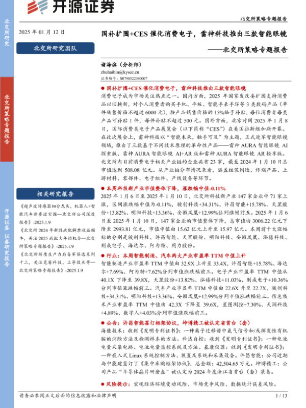 【开源证券】【20250112】北交所策略专题报告:国补扩围+CES催化消费电子,雷神科技推出三款智能眼镜-13页