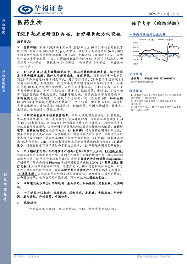 【华福证券】【20250112】医药生物行业定期报告:TSLP靶点重磅BD再起,看好超长效方向突破-15页