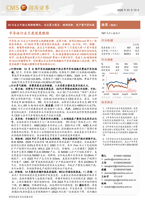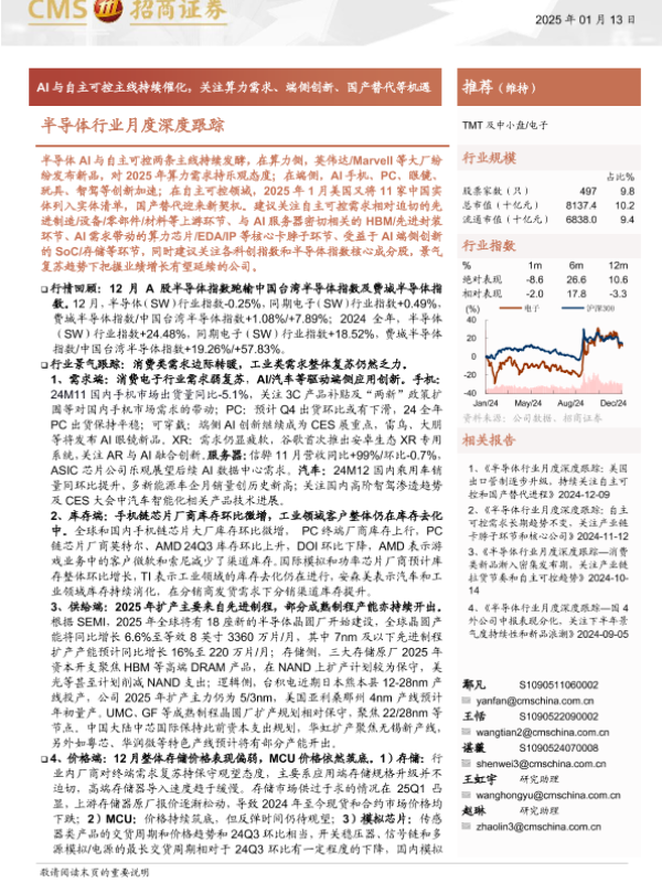 【海通证券】【20250113】半导体行业月度深度跟踪:AI与自主可控主线持续催化,关注算力需求、端侧创新、国产替代等机遇-78页