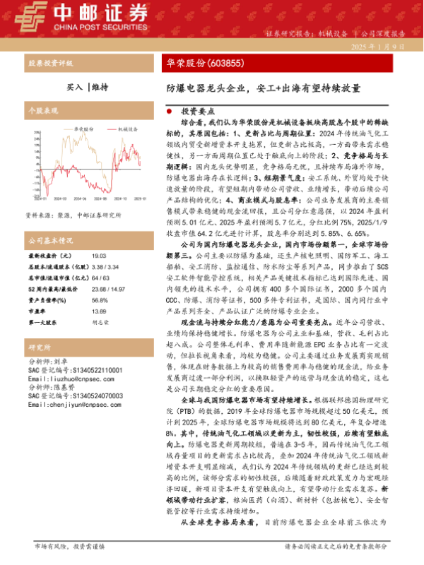 【中邮证券】【20250109】华荣股份(603855)防爆电器龙头企业,安工%2b出海有望持续放量-28页