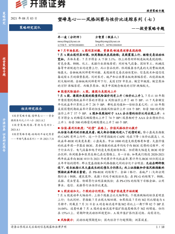 【开源证券】【20210803】投资策略专题:风格洞察与性价比追踪系列(七),望峰息心-18页