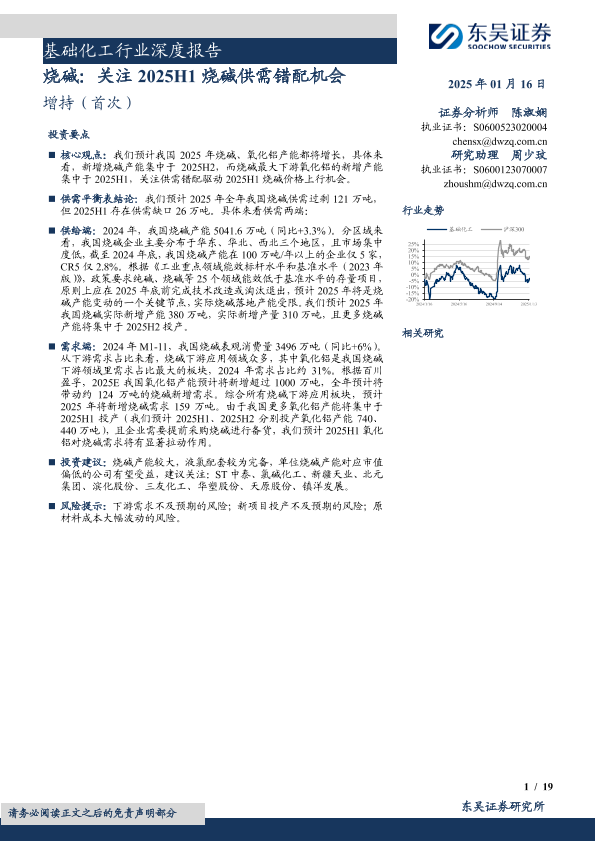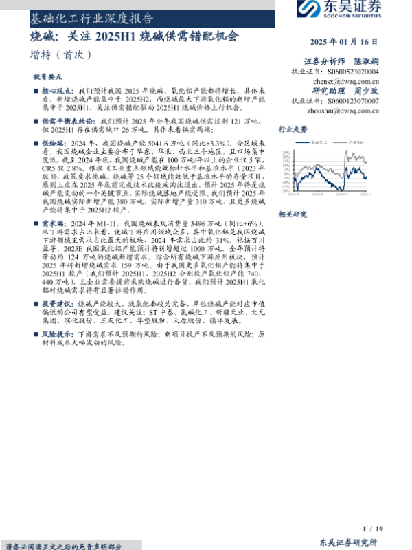 【东吴证券】【20250116】基础化工行业深度报告:烧碱,关注2025H1烧碱供需错配机会-19页