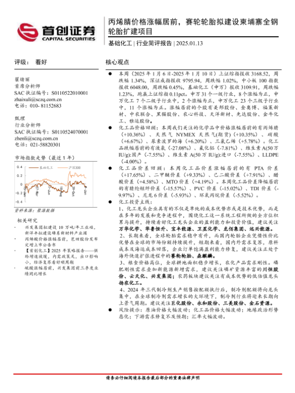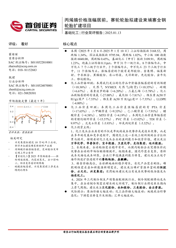 【首创证券】【20250113】基础化工行业简评报告:丙烯腈价格涨幅居前,赛轮轮胎拟建设柬埔寨全钢轮胎扩建项目-16页