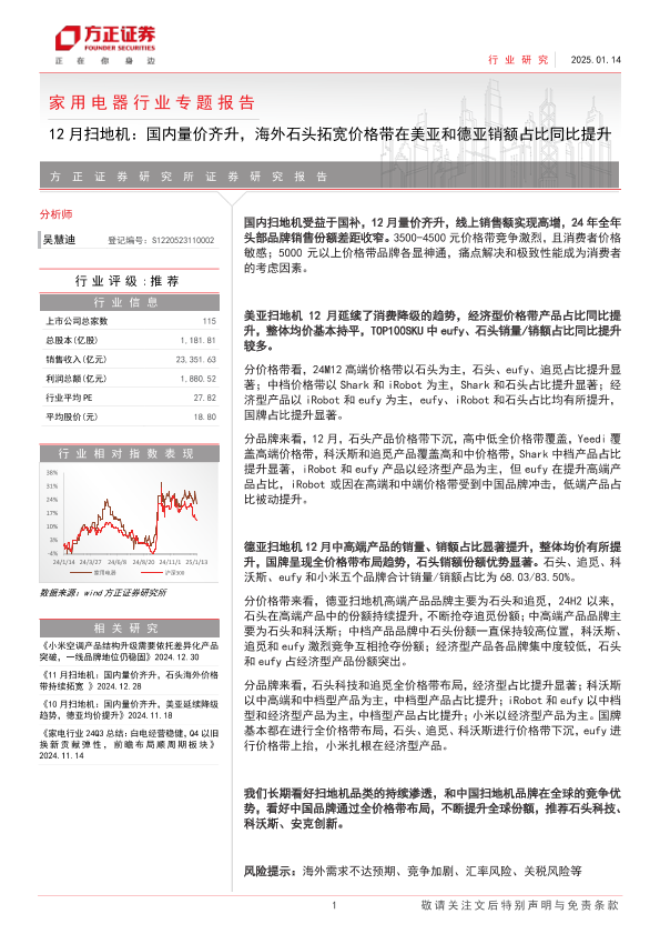 【方正证券】【20250114】12月扫地机:国内量价齐升,海外石头拓宽价格带在美亚和德亚销额占比同比提升-26页