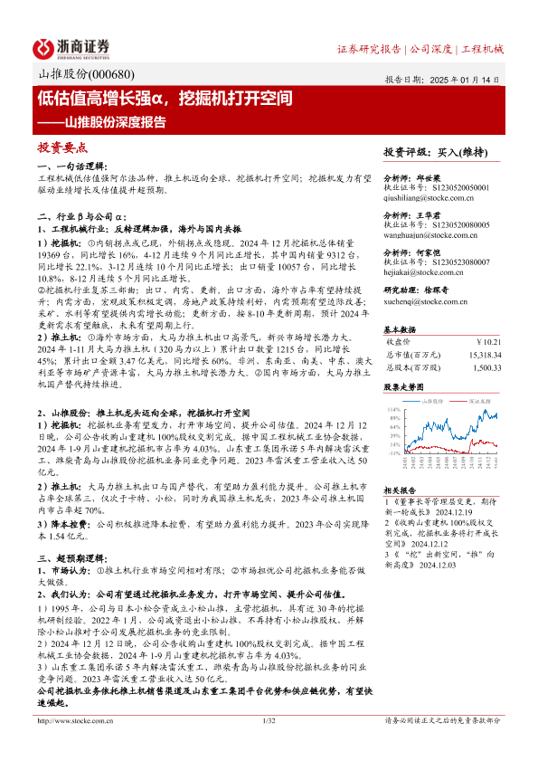 【浙商证券】【20250114】山推股份(000680)深度报告:低估值高增长强α,挖掘机打开空间-32页