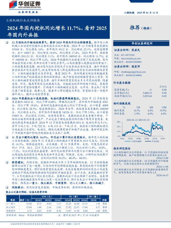 【华创证券】【20250112】工程机械行业点评报告:2024年国内挖机同比增长11.7%,看好2025年国内外共振-15页