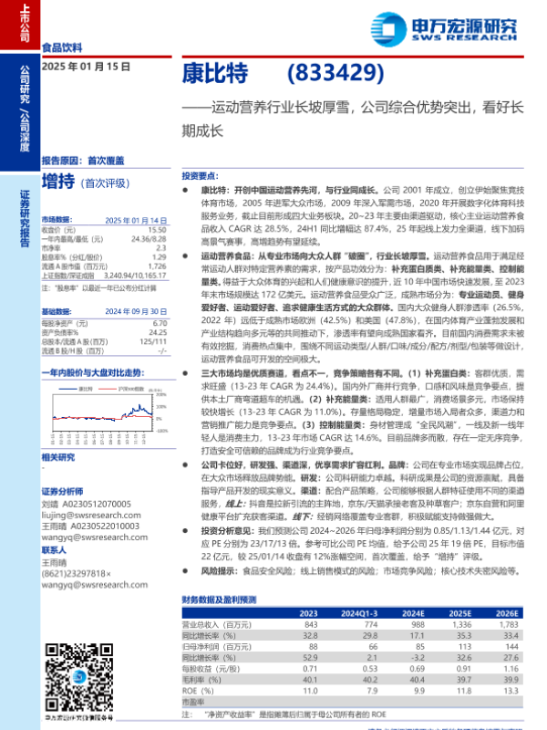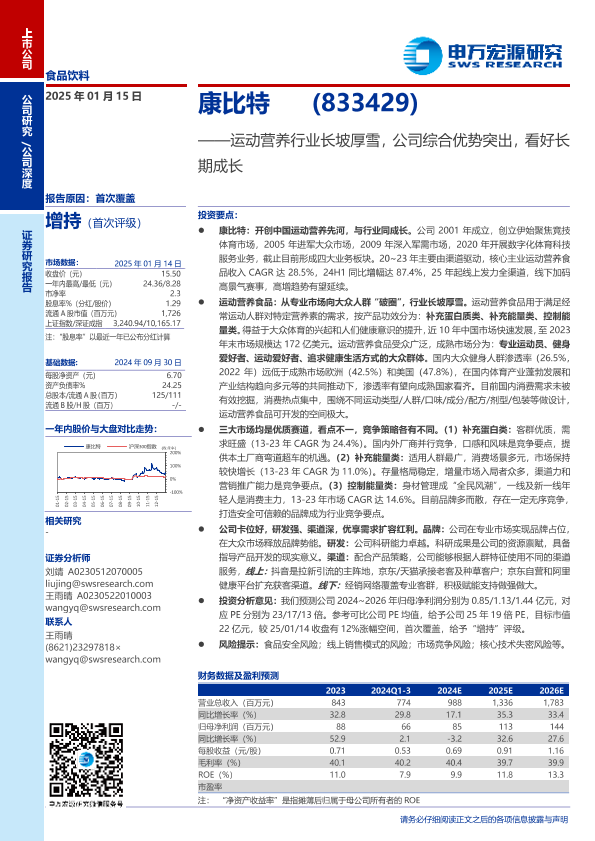 【申万宏源】【20250115】康比特(833429)运动营养行业长坡厚雪,公司综合优势突出,看好长期成长-35页