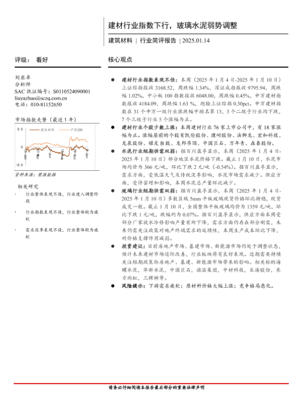 【首创证券】【20250114】建筑材料行业简评报告:建材行业指数下行,玻璃水泥弱势调整-19页