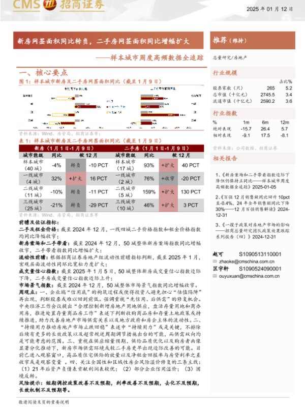 【海通证券】【20250112】房地产行业样本城市周度高频数据全追踪:新房网签面积同比转负,二手房网签面积同比增幅扩大-12页