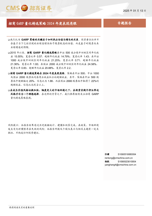 【海通证券】【20250113】招商GARP量化精选策略2024年度表现亮眼-10页