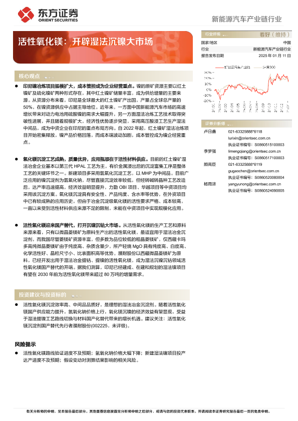【东方证券】【20250111】新能源汽车产业链行业:活性氧化镁,开辟湿法沉镍大市场-22页