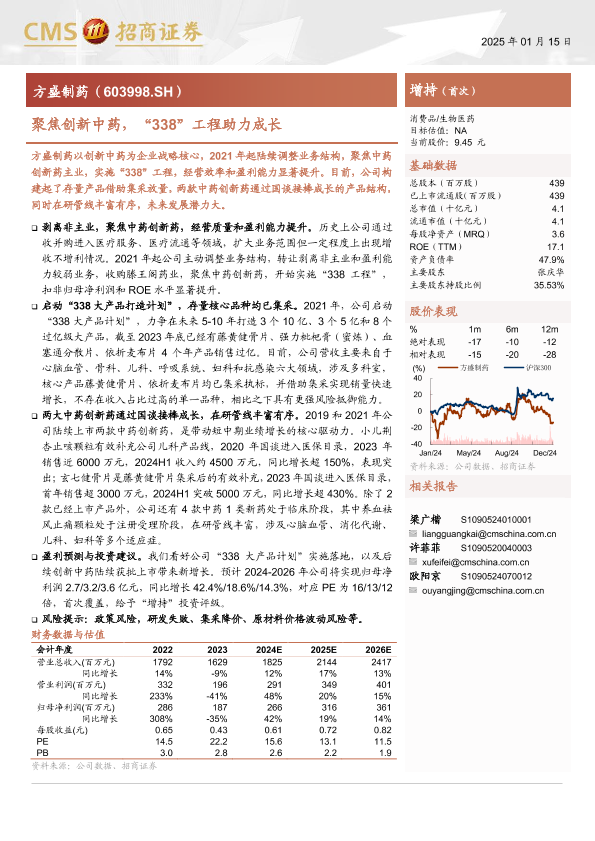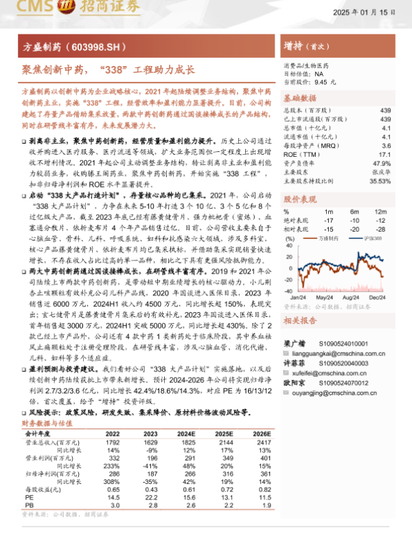 【海通证券】【20250115】方盛制药(603998)聚焦创新中药,“338”工程助力成长-17页