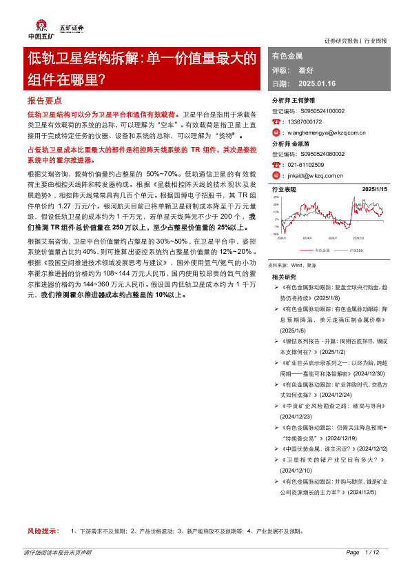 【五矿证券】【20250116】有色金属行业低轨卫星结构拆解:单一价值量最大的组件在哪里?-12页