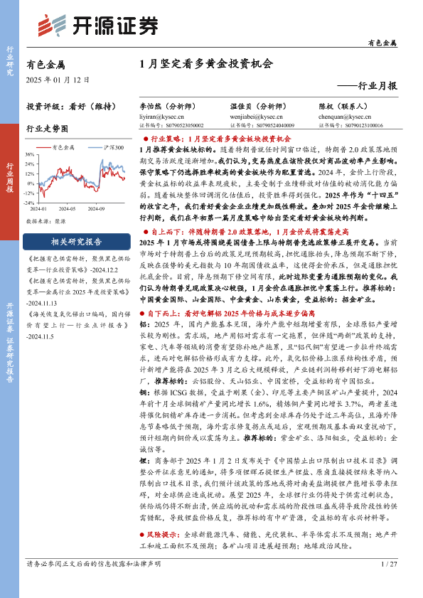 【开源证券】【20250112】有色金属行业月报:1月坚定看多黄金投资机会-27页