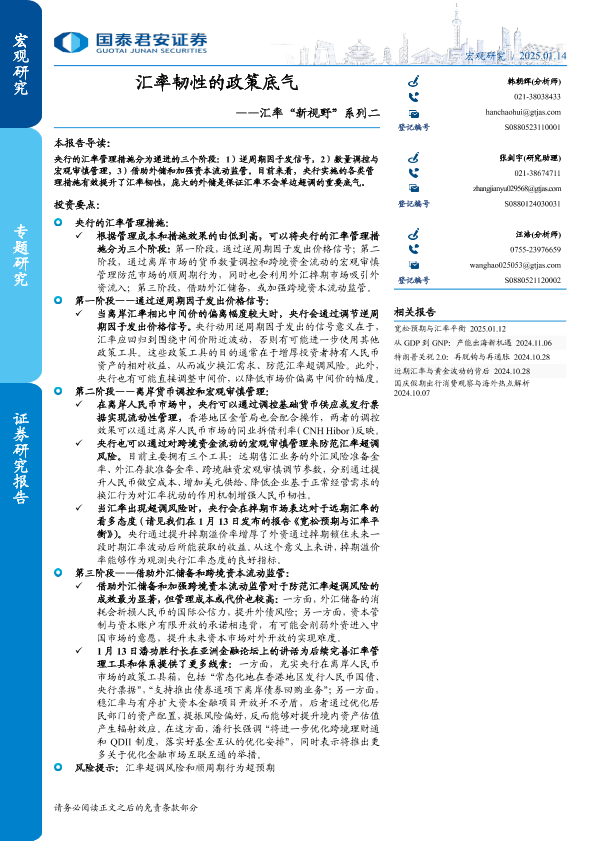 【国泰君安证券】【20250114】汇率‘新视野’系列二:汇率韧性的政策底气-10页