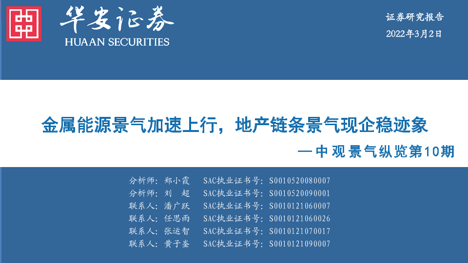 【华安证券】【20220302】中观景气纵览第10期:金属能源景气加速上行,地产链条景气现企稳迹象-58页