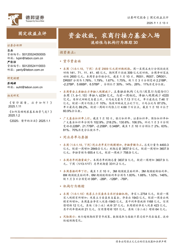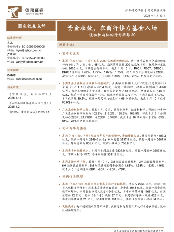 【德邦证券】【20250113】流动性与机构行为跟踪30:资金收敛,农商行接力基金入场-18页