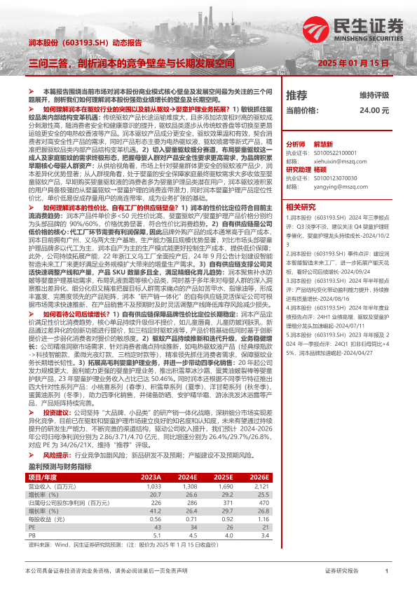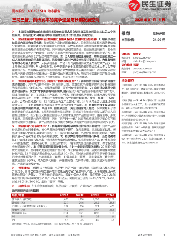 【民生证券】【20250116】润本股份(603193)动态报告:三问三答,剖析润本的竞争壁垒与长期发展空间-21页