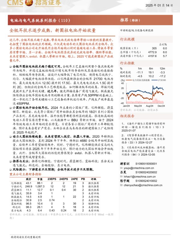 【海通证券】【20250114】电力设备及新能源行业电池与电气系统系列报告(110):全极耳技术逐步成熟,新圆柱电池开始放量-17页