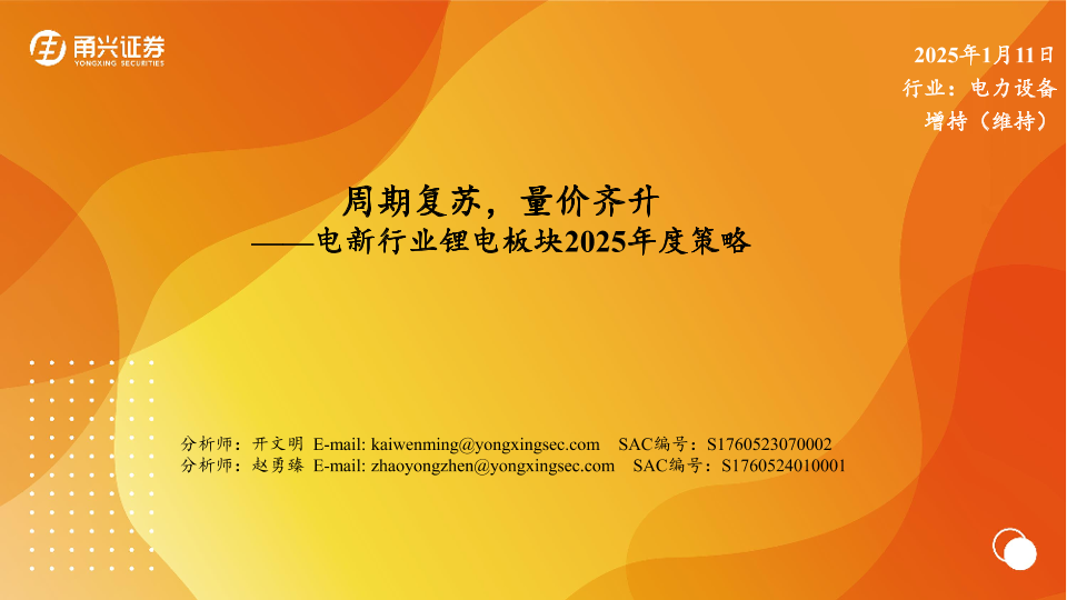 【甬兴证券】【20250111】电新行业锂电板块2025年度策略:周期复苏,量价齐升-40页