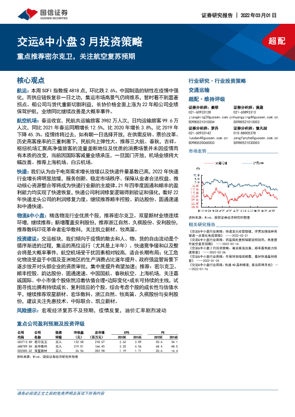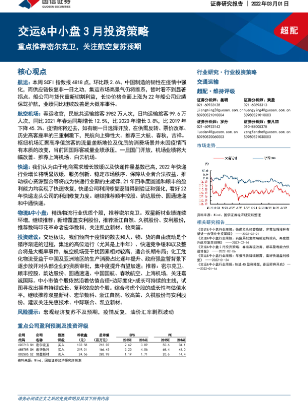 【国信证券】【20220301】交运&中小盘3月投资策略:重点推荐密尔克卫,关注航空复苏预期-27页