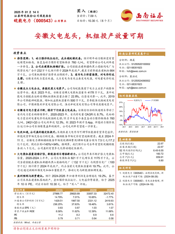 【西南证券】【20250114】皖能电力(000543)安徽火电龙头,机组投产放量可期-33页