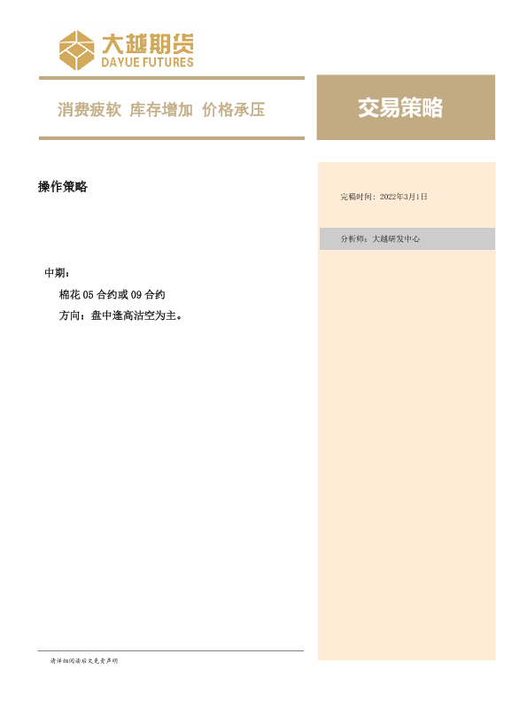 【大越期货】【20220301】交易策略:消费疲软,库存增加,价格承压-18页