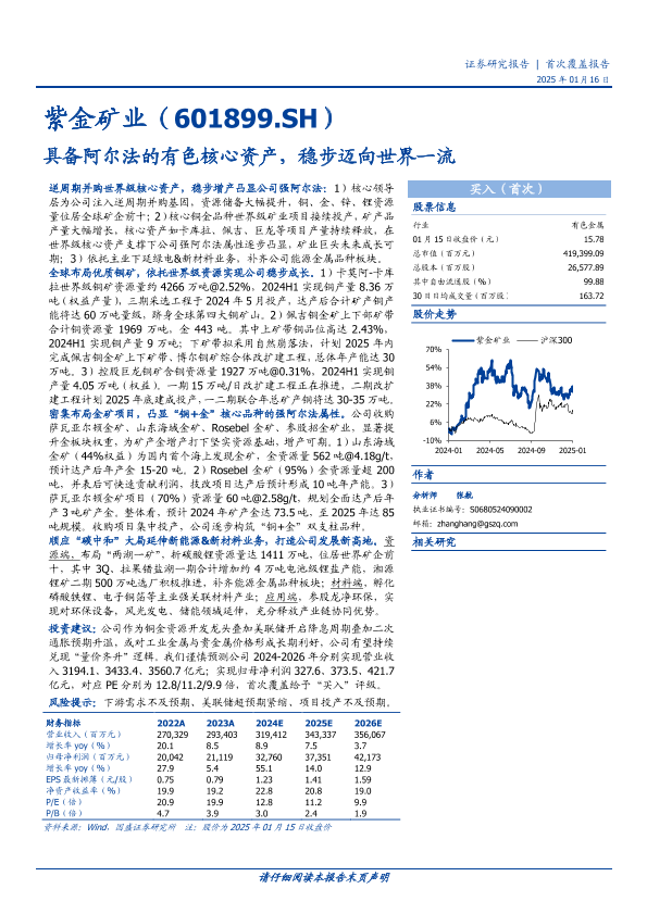 【国盛证券】【20250116】紫金矿业(601899)具备阿尔法的有色核心资产,稳步迈向世界一流-39页