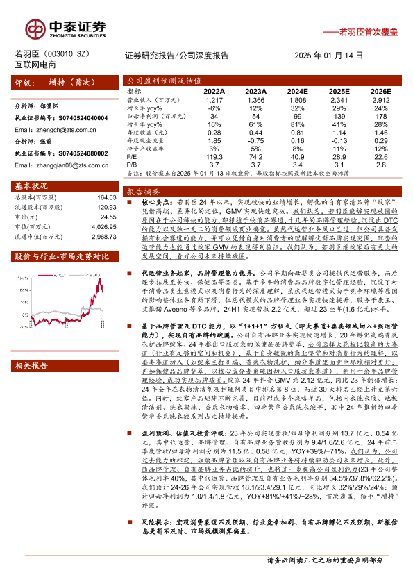 【中泰证券】【20250114】若羽臣(003010)首次覆盖:乘“香气之旅”,代运营公司的再启航-21页