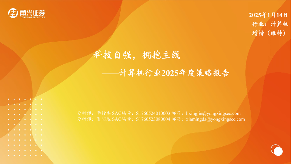 【甬兴证券】【20250114】计算机行业2025年度策略报告:科技自强,拥抱主线-23页