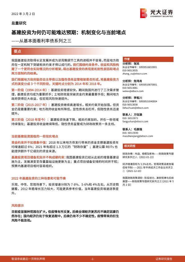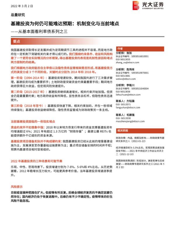 【光大证券】【20220302】从基本面看利率债系列之三:基建投资为何仍可能难达预期,机制变化与当前堵点-49页