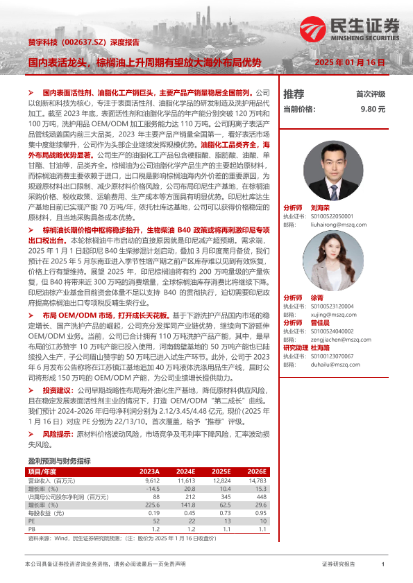 【民生证券】【20250116】赞宇科技(002637)深度报告:国内表活龙头,棕榈油上升周期有望放大海外布局优势-37页