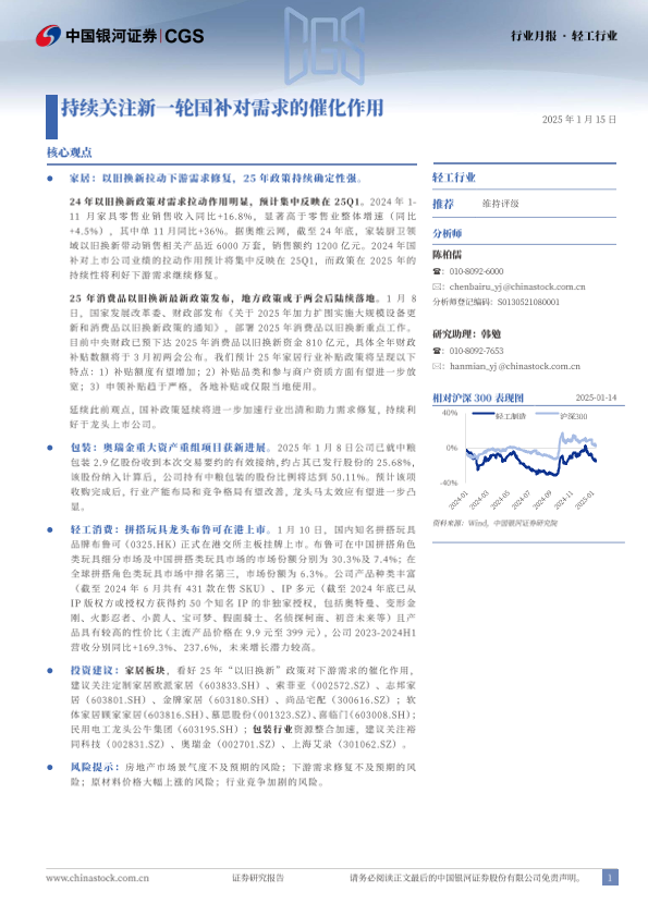 【银河证券】【20250115】轻工行业月报:持续关注新一轮国补对需求的催化作用-18页